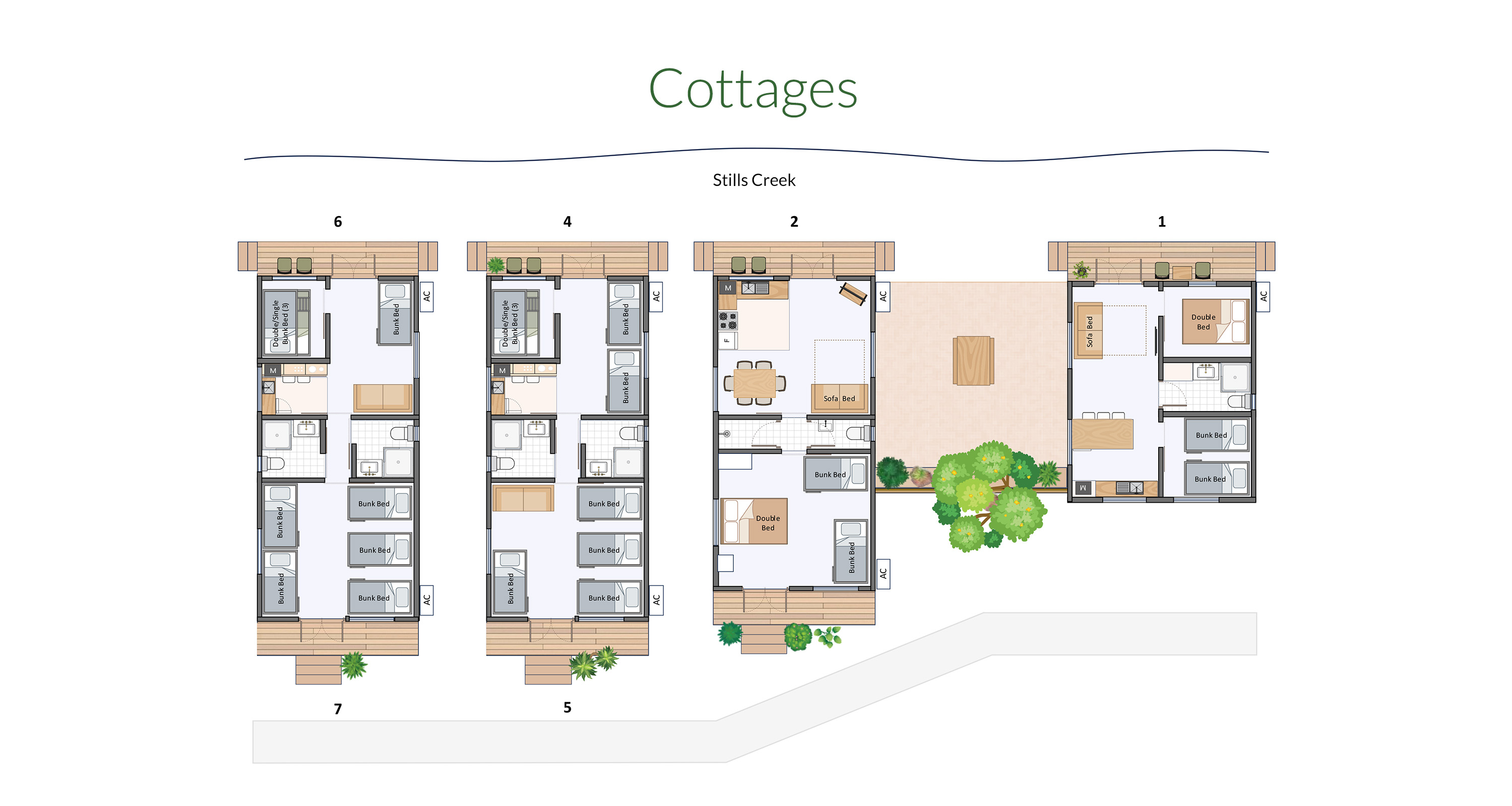 4 - 10 beds per cottage, 40 beds