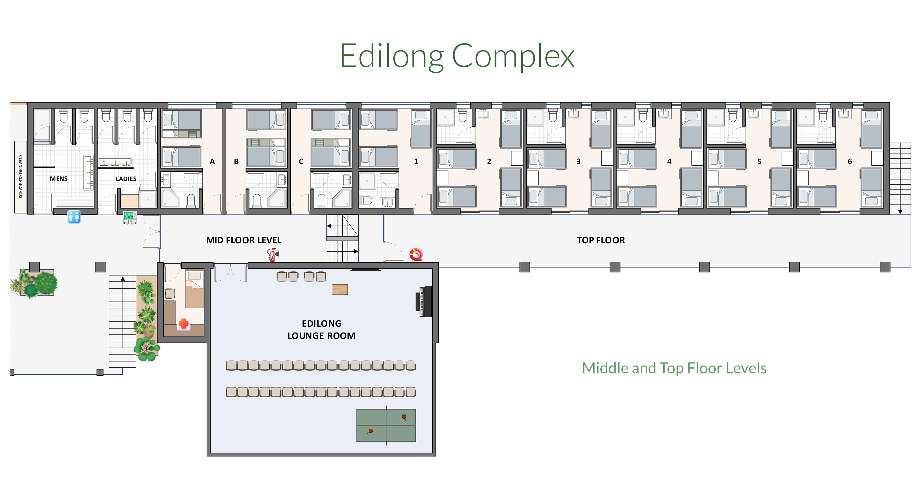 Edilong is our largest venue, best suited for churches, schools, youth camps and community groups. The complex sleeps between 50-107 people.
